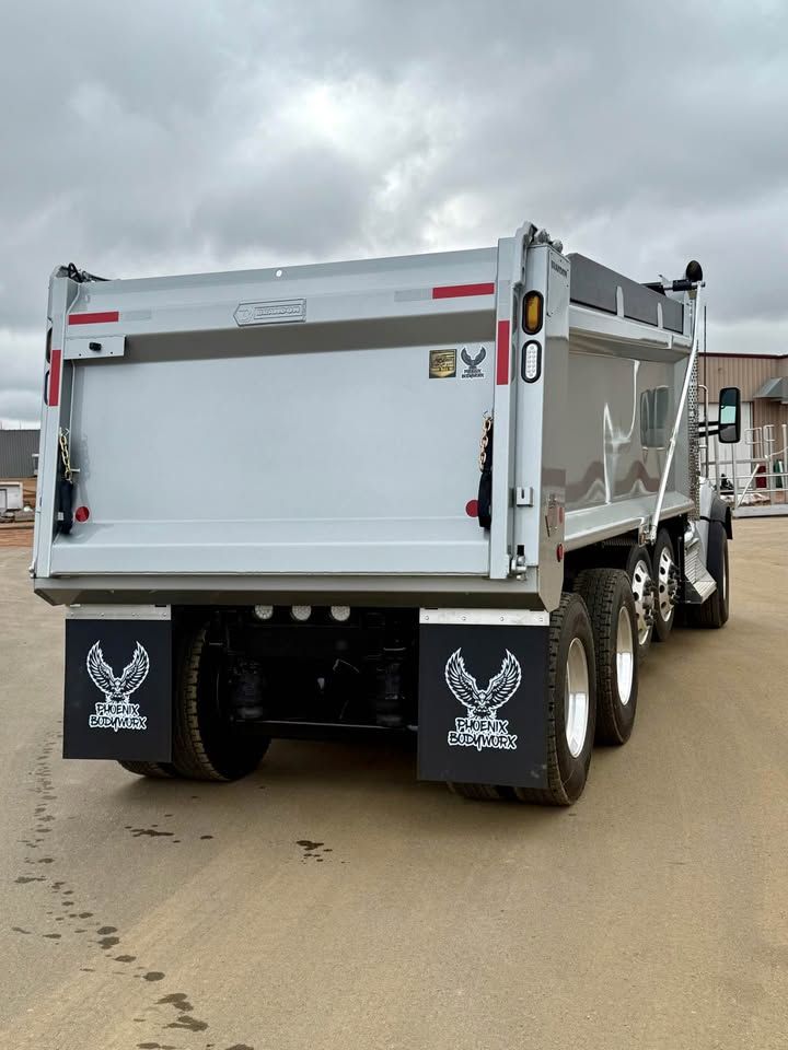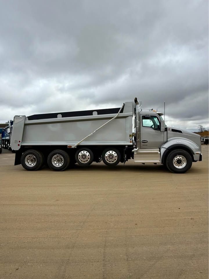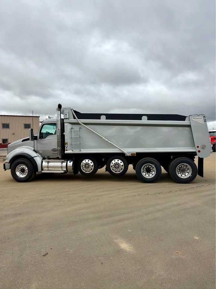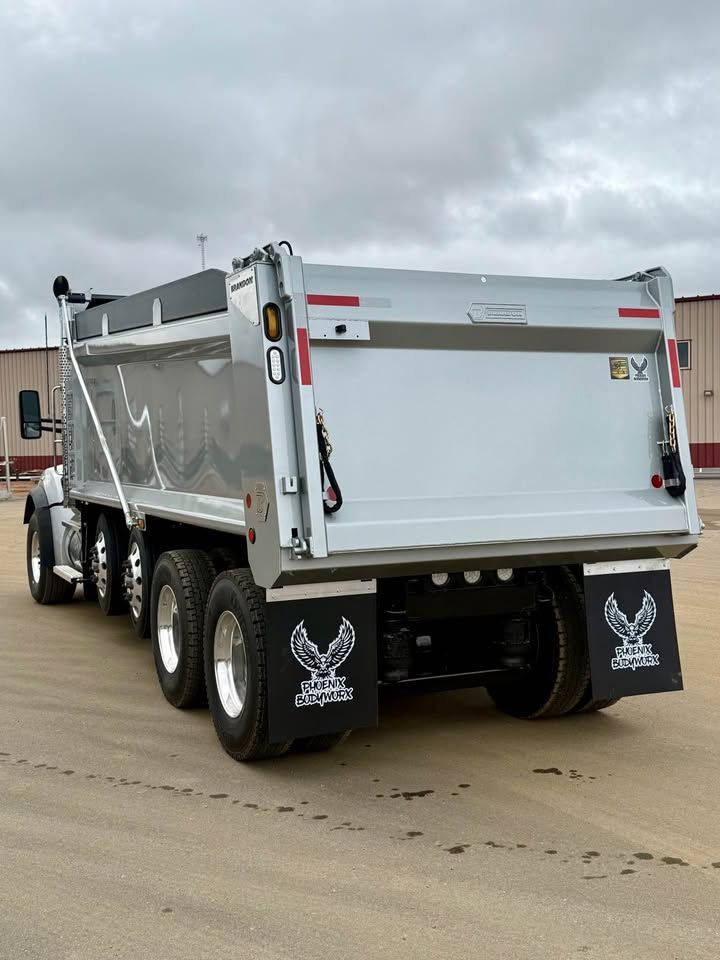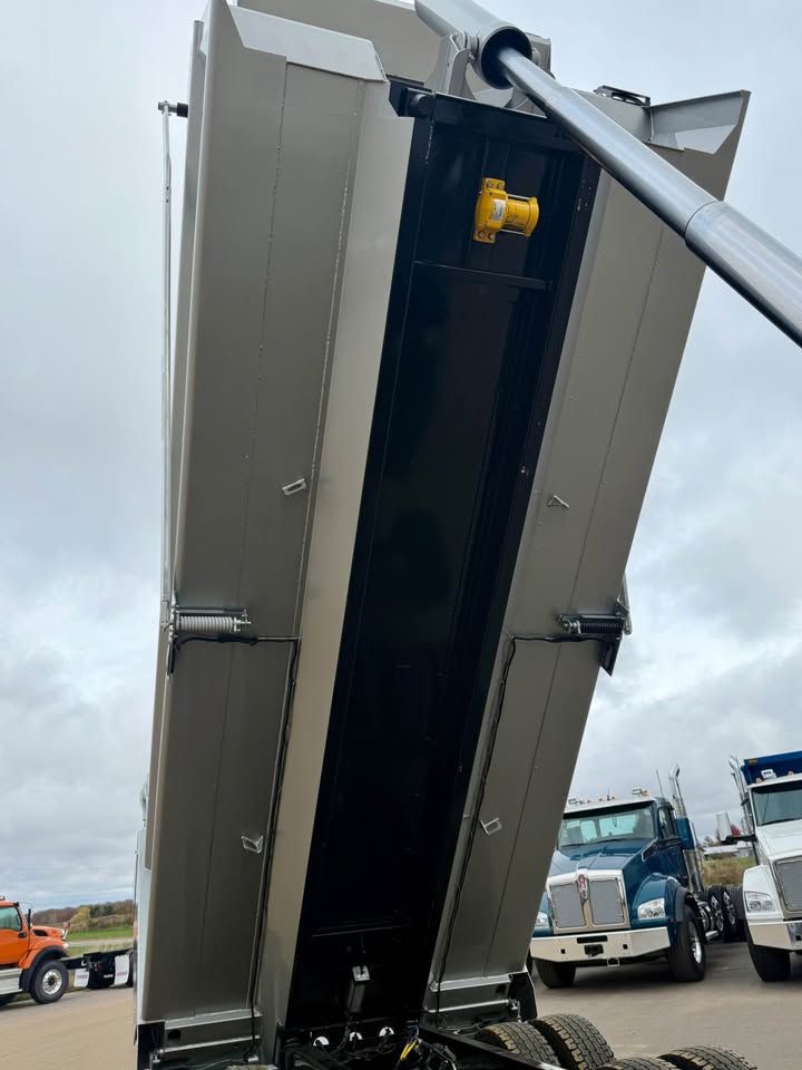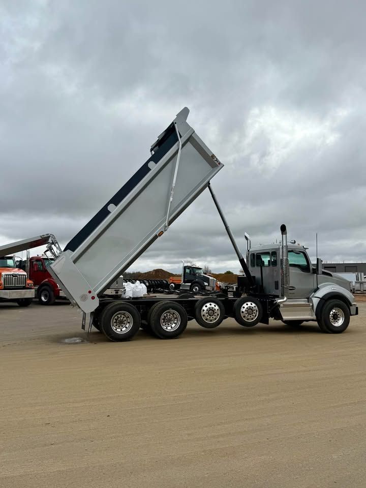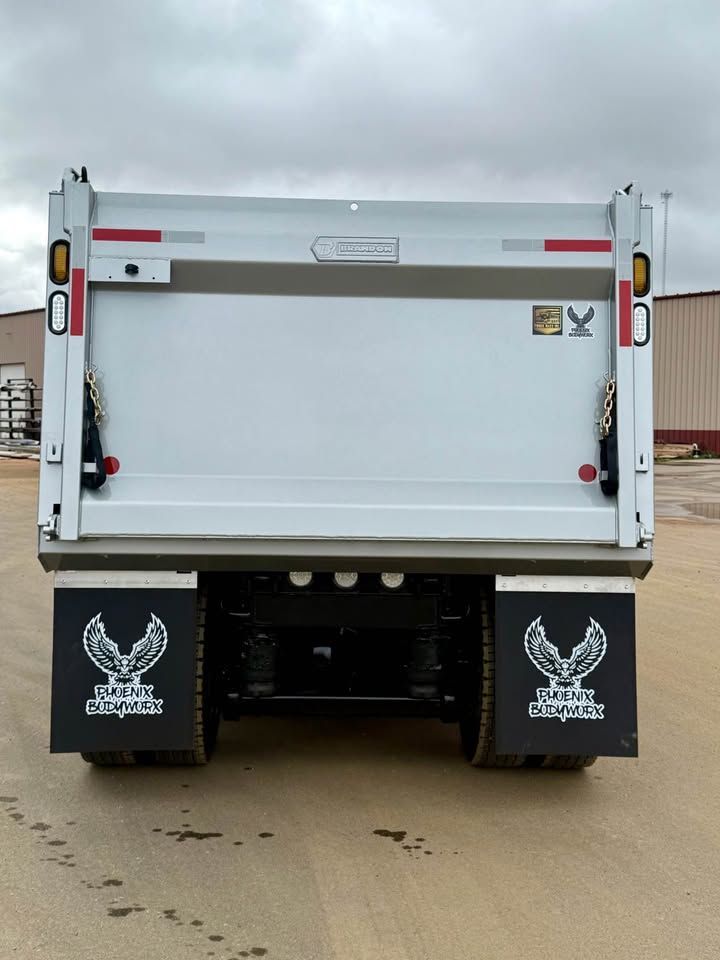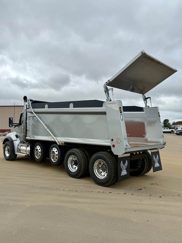Details: Truck is equipped with Diamond interior and ultra leather seats. Includes touch screen navigation and Apple CarPlay capabilities. Truck is upfitted with a 19.5 FT Brandon High Lift dump body with a 3/16" floor. Also equipped with a vibrator, electric Aero tarp system, and strobe lights. Additional equipment upgrades and options available upon request.