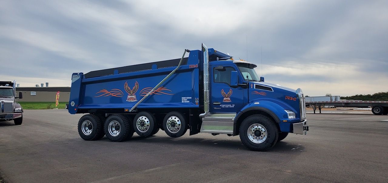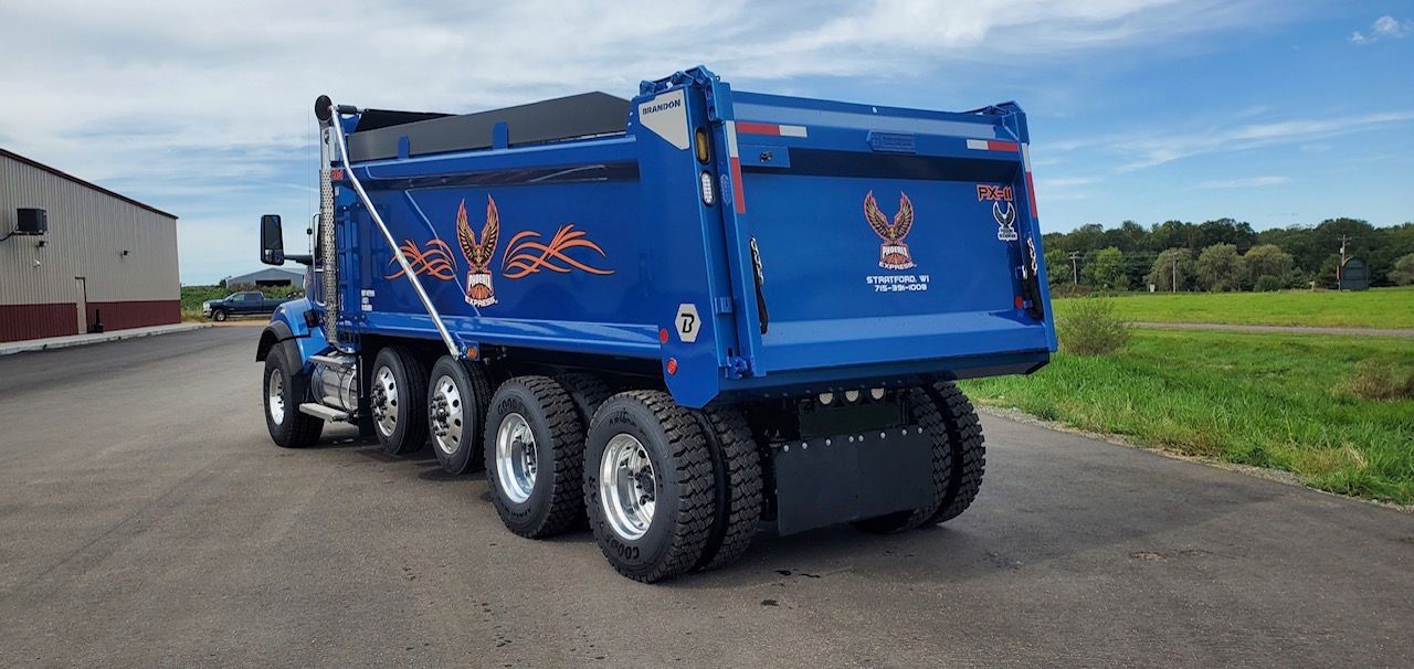 Details: Truck is equipped with a 19'6" Brandon High-Lift body with a tarp, vibrator, strobe lights, and heat kit. Truck is currently in service. Additional upgrades and equipment available upon request.